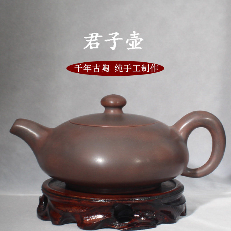 广西钦州泥坭兴陶全纯手工紫陶刻梅日进桶金茶壶具出水超好